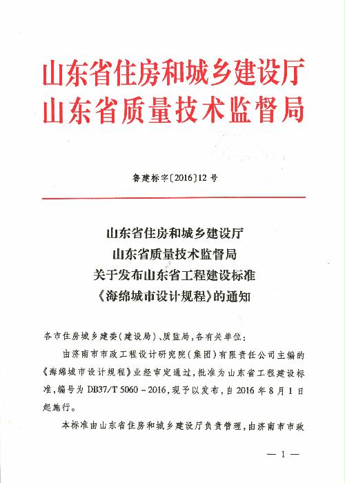 關于發布山東省工程建設標準《海綿城市設計規程》的通知